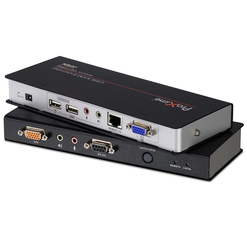 The CE770 is a USB based KVM Extender with Deskew function. The automatic signal compensation and RS-232 serial functionality allow access to a computer system from a remote USB console.